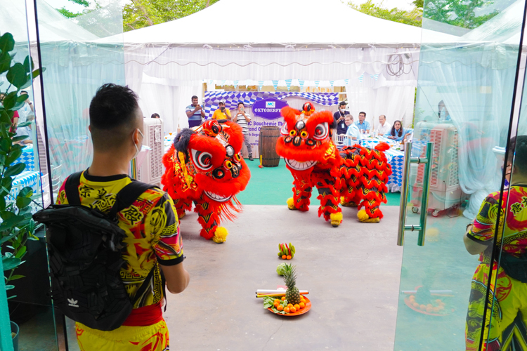 Dr. Ekkehard zur Mühlen, Geschäftsführer der MC-Bauchemie GmbH & Co. KG, und Vincent Loke, Regionalleiter für Südostasien bei der MC-Bauchemie, begrüßten die Kunden und Mitarbeiter der MC-Bauchemie (Malaysia) Sdn Bhd (im Folgenden: MC-Bauchemie Malaysia) und Vertreter der MC-Bauchemie Singapur zu einem Oktoberfest, das ganz im Zeichen des Mixes der Kulturen und Traditionen stand. Eröffnet wurde die Feier mit dem traditionellen chinesischen Löwentanz, der der MC-Bauchemie Malaysia und ihrem neuen Standort Erfolg, Wohlstand und Glück bringen soll.
