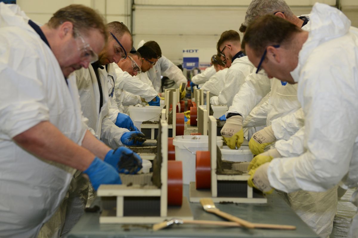Am Montag und Dienstag, dem 18. und 19. Februar, stand der Grundlagenlehrgang „Zertifizierte Schachtsanierung“ für Verarbeiter auf dem Programm. In verschiedenen Theorie- und Praxisblöcken erfuhren die knapp 30 Teilnehmenden alles rund um die Abdichtung von Bauwerken, die Reprofilierung und Beschichtung mit Mörtelsystemen und die Lineranbindung an Schächte. Am dritten Tag der Woche fand der Aufbaulehrgang „Zertifizierte Schachtsanierung“ statt, an dem Verarbeiter teilgenommen haben, die den Grundlehrgang bereits erfolgreich absolviert hatten. In vertiefenden Vorträgen wurden Themen wie Arbeitssicherheit, automatisierte Schachtsanierung und Beschichtung mit Kunststoffsystemen behandelt.