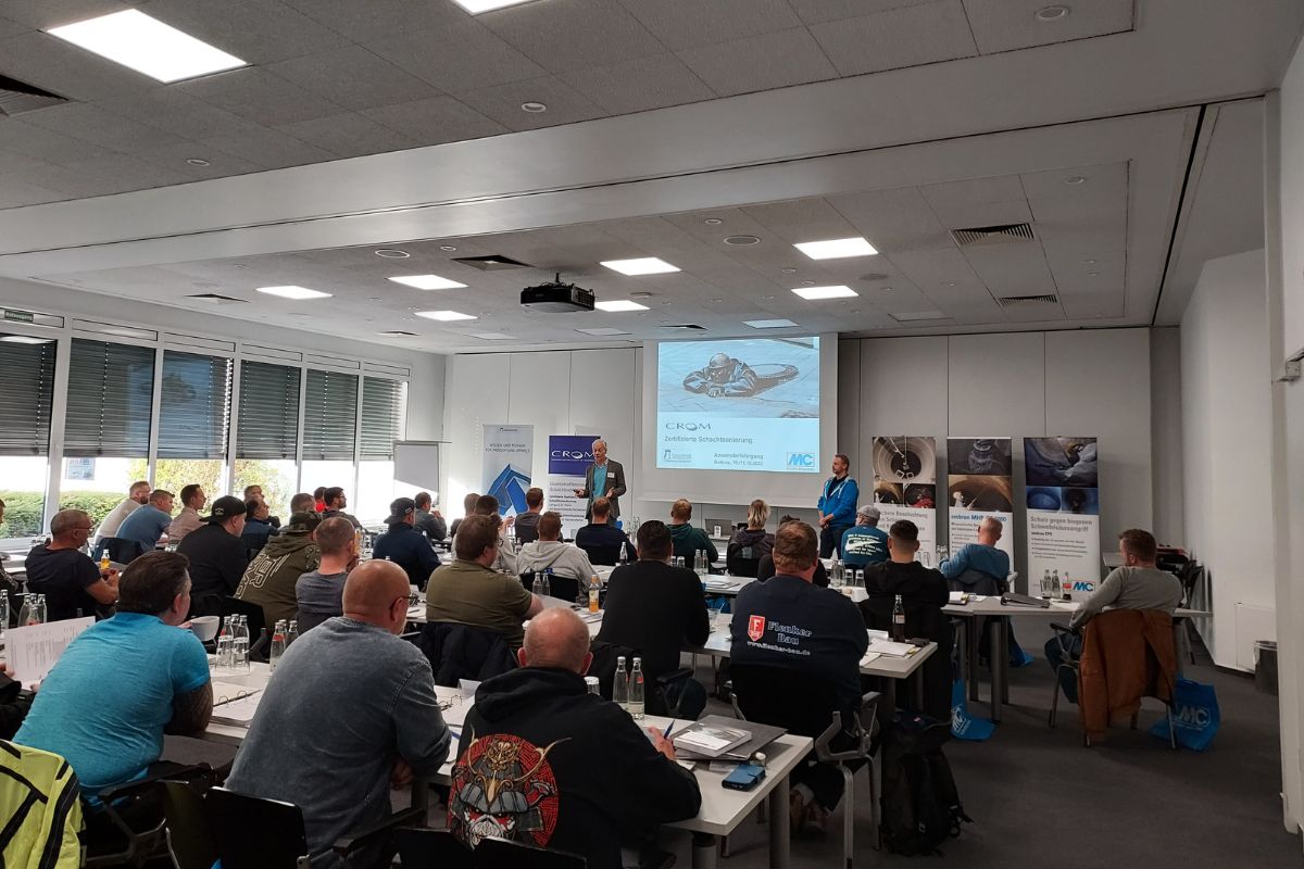 Die diesjährige Lehrgangsreihe „CROM – Zertifizierte Schachtsanierung“ fand vom 10. bis 13. Oktober 2022 statt. Wie auch in den vergangenen Jahren übernahm Prof. Dr.-Ing. Karsten Körkemeyer von der TU Kaiserslautern zusammen mit dem Fachbereich ombran der MC-Bauchemie die Federführung.