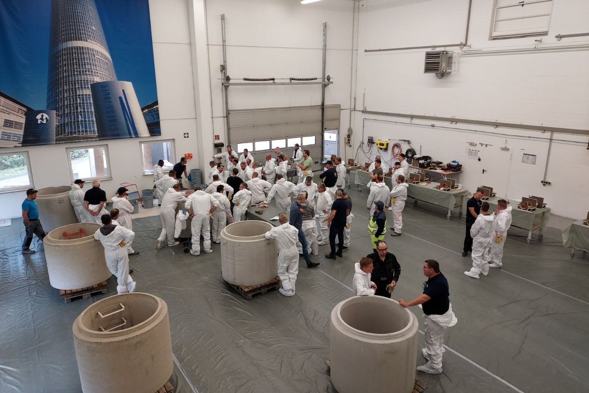 Im anschließenden eintägigen CROM-Aufbaulehrgang für Anwender am 12. Oktober 2022 konnten die Fachverarbeiter, die an den Vortagen bzw. in den Vorjahren bereits den Anwenderlehrgang erfolgreich absolviert haben, ihr Wissen in der Schachtsanierung noch weiter vertiefen. Der Aufbaulehrgang brachte den Teilnehmern neben der spritztechnischen und automatisierten maschinellen Beschichtung im MRT-Verfahren mit Mörtelsystemen und Kunststoffsystemen auch das Thema Arbeitssicherheit nahe. Im praktischen Teil hatten die Fachverarbeiter dann wieder die Möglichkeit, Sanierungsmaterialien selbständig zu applizieren.